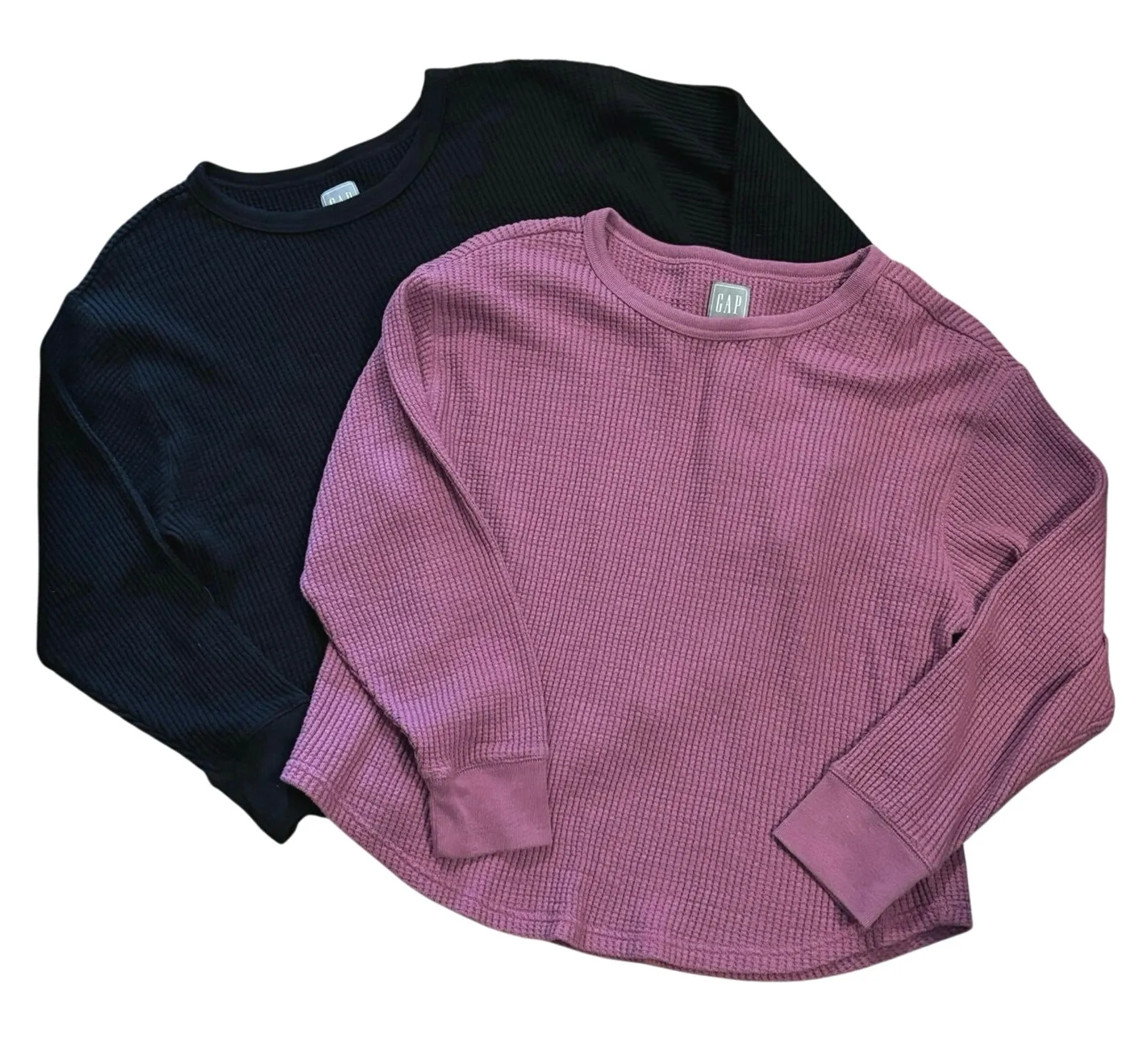 Lot of 2 Gap Sweats Waffle Crewneck long sleeve shirts. Colors: True Black, Deep Dahlia Size: XL... Show more
