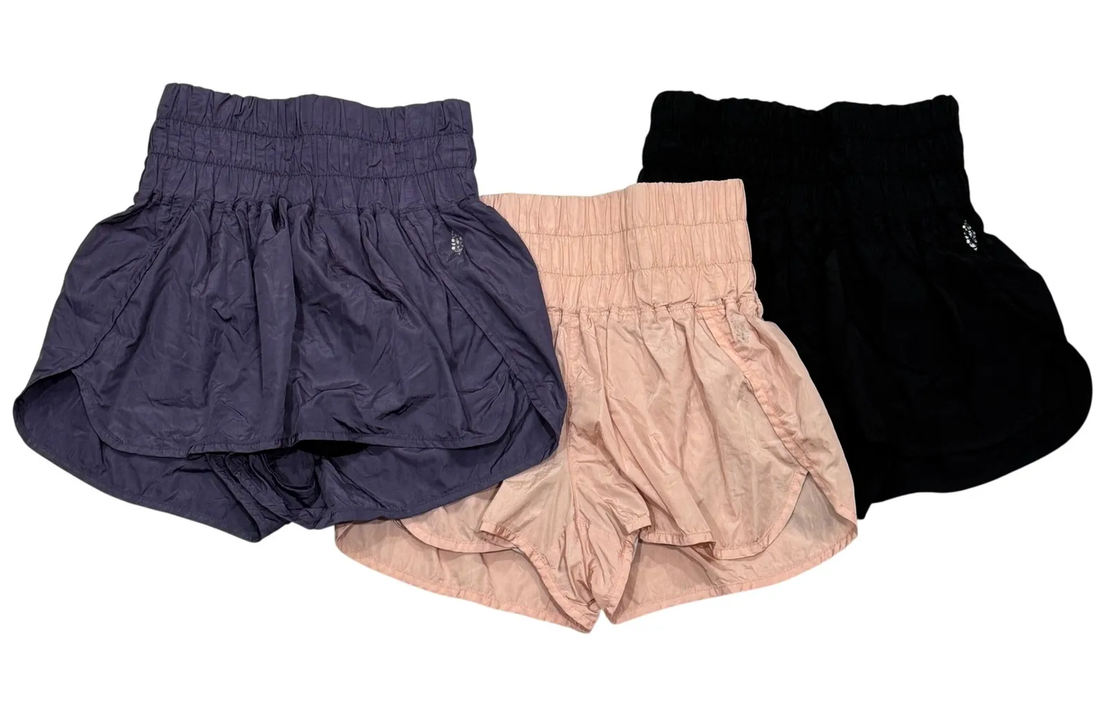 Free People Movement Good Karma shorts in a lightweight, crinkled fabric. Designed with a high, ruched waistband for a comfortable and flattering fit, these shorts feature a relaxed silhouette and built-in briefs for added support. Perfect for athletic activities, lounging, or casual wear. Wash wear only. Department: Women Style: Athletic Performance/Activity: Gym & Training, Running & Jogging Fit: Athletic Material: 100% Polyester Fabric Type: Mesh Features: Lightweight, Elastic Waist, Quick Dry, Breathable Pattern: Solid Occasion: Activewear, Casual Closure: Drawstring Season: Summer, Spring Keywords: Free People Movement, running shorts, high waist, ruched waistband, athletic wear, lounge shorts, performance shorts, sporty, active lifestyle, yoga shorts, gym shorts, workout shorts