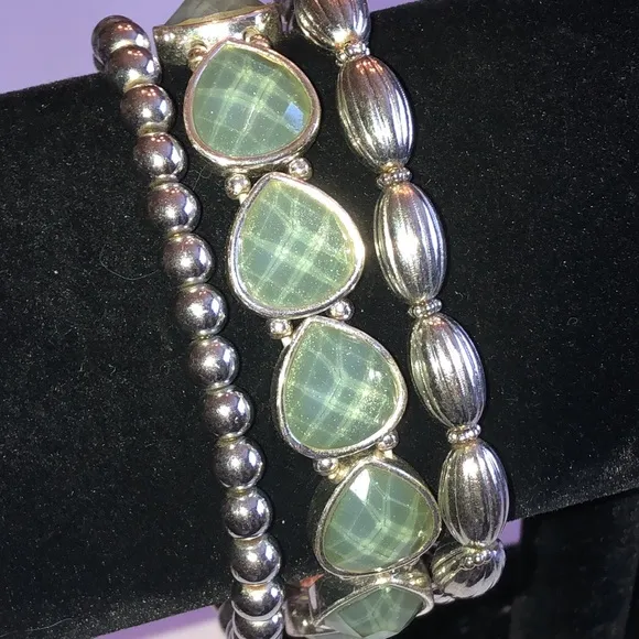 Lot of 3 Silver Tone Light Blue Opaque Rhinestone Boho Beaded Stretchy Bracelets - $19 - From Vault