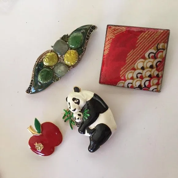 Lot Of 4 Brooches Pins Variety Panda Apple Etc - $31 - From Charlsey