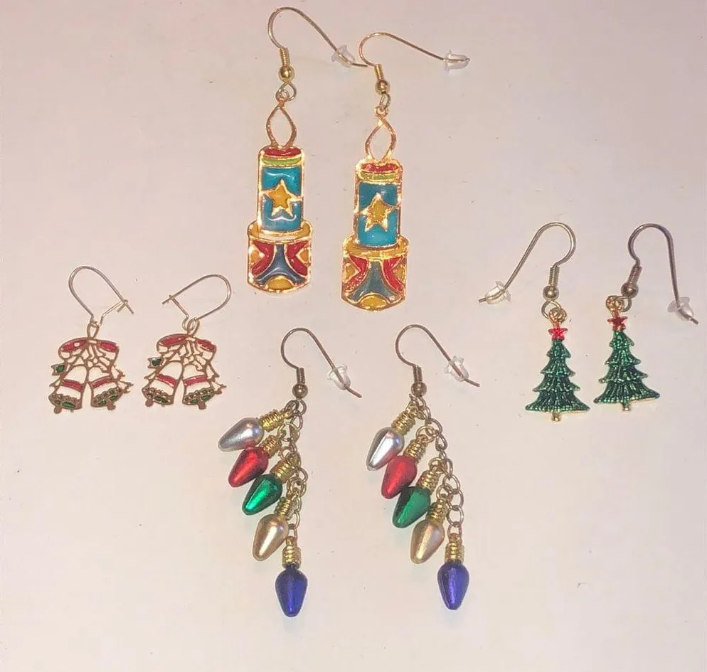 Lot of 4 Christmas Tree Holiday Ornament Pierced Earrings Gold - $21 - From Vault
