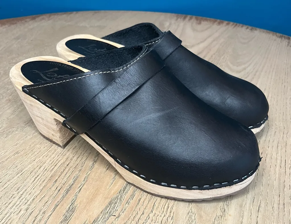 Lotta From Stockholm Black Leather Swedish Clogs Wooden Heel EU 39 Women’s 8.5 - $45 - From Amanda