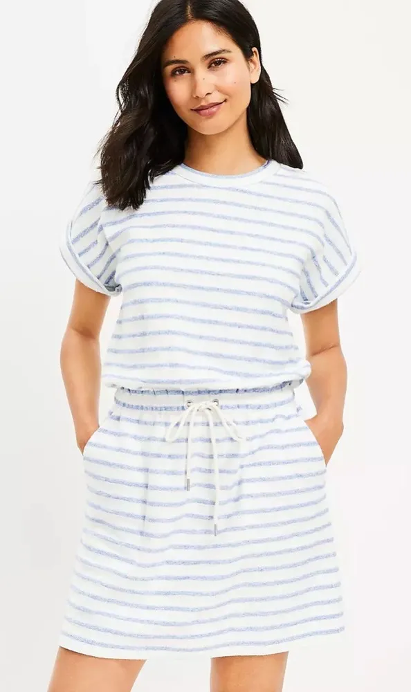 Lou & Grey Blue and White Striped Cozy Cotton Terry Pocket Dress Size Large Great pre owned conditi... Show more