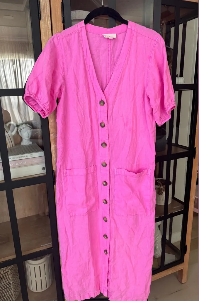 Lou & Grey linen midi dress button down short sleeve shirt neon pink bubblegum Size XS - $30 - From Filo