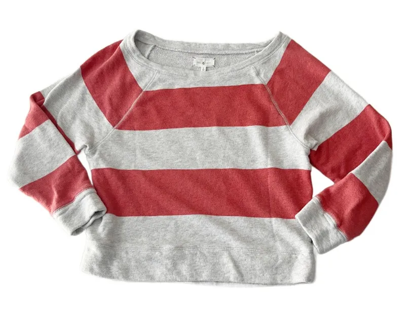 Womens Lou & Gray Orange and Gray Striped French Terry Lined Sweatshirt -3/4 sleeves -shorter fit le... Show more