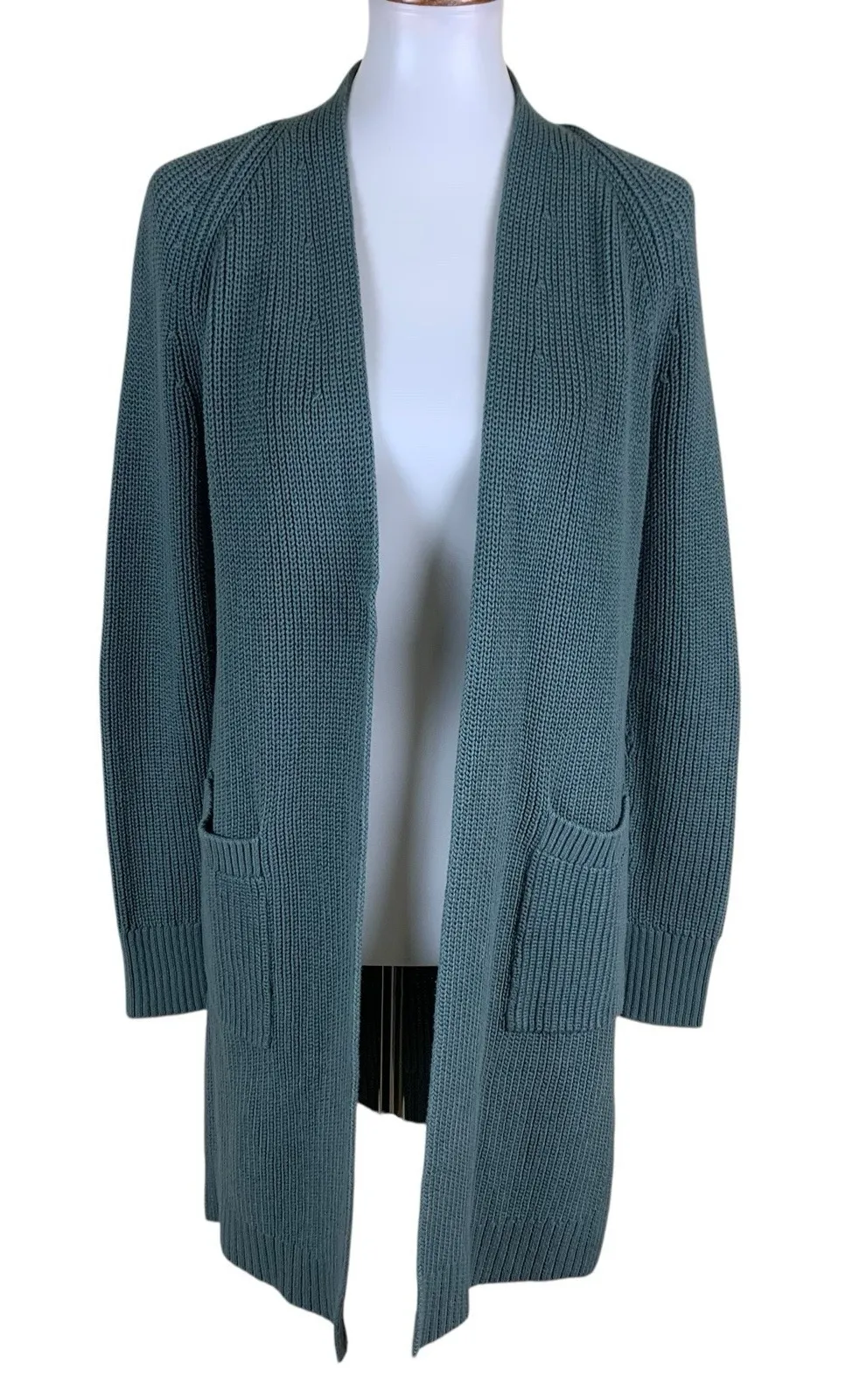 Lou And Grey Long Open Front Cardigan XS Blue Cozy Minimalist Cotton Knit NWT - $35 New With Tags - From Rodica