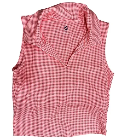 Nice breathable material. The top has a shelf in it but no padding. Sleeveless Polo Top Pink Gingha... Show more