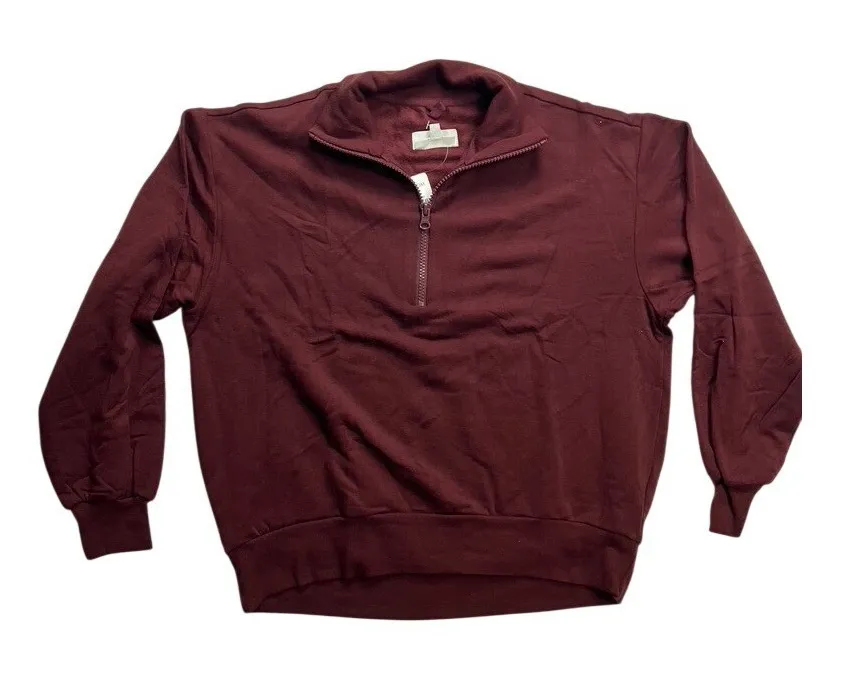 Lou & Grey Nordstrom Signature Soft Plush 1/4 Zip Sweatshirt Maroon Burgundy Measurements: • Ches... Show more