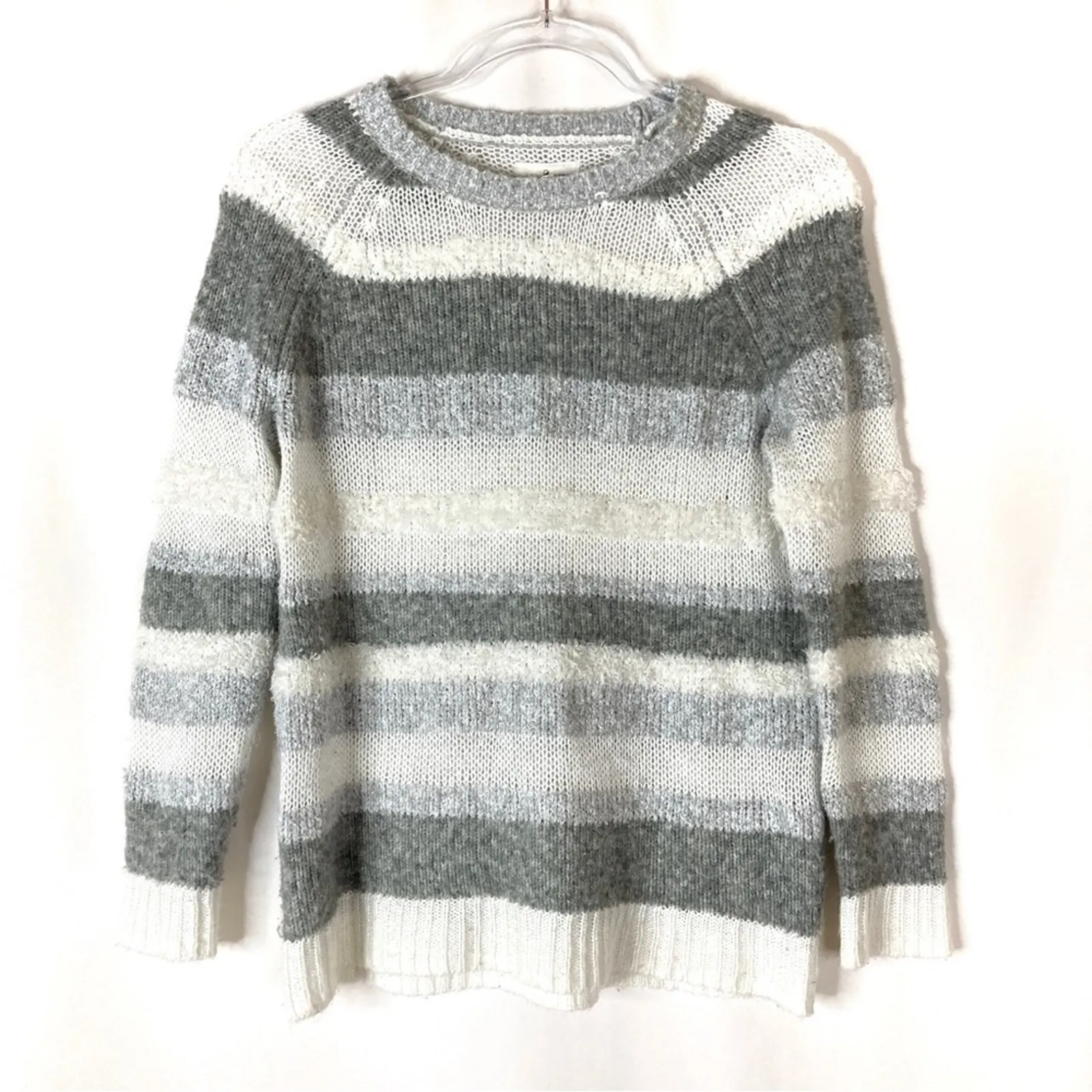 Lou & Grey White/gray stripe Fuzzy sweater Crew neck Long sleeve Size XS Acrylic/Cotton/Nylon/Poly... Show more