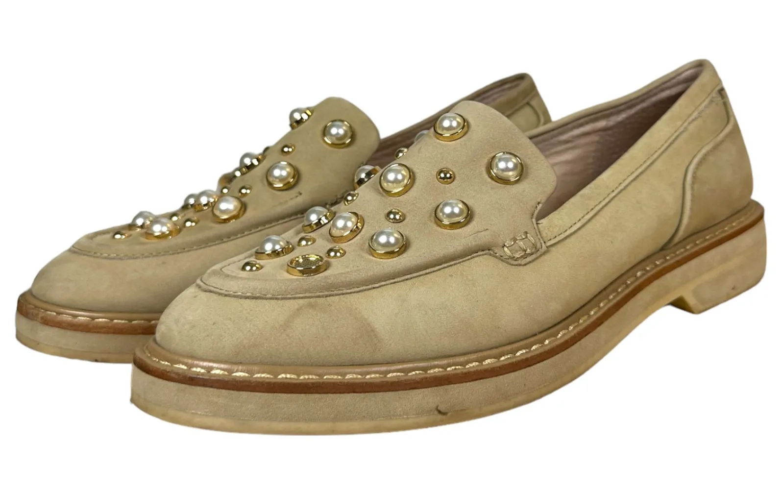 Size: Women's Size 7.5 Style: casual neutral business professional office comfort maximalist girly feminine slip on loafer leather pearl stud studded embellished Condition: Pre-owned, good used condition. See photos Always open to reasonable offers! Bundle for the best deals! FYI all items come from a non-smoking but pet friendly home. Super fast shipping: We ship items within 48 hours of purchase!