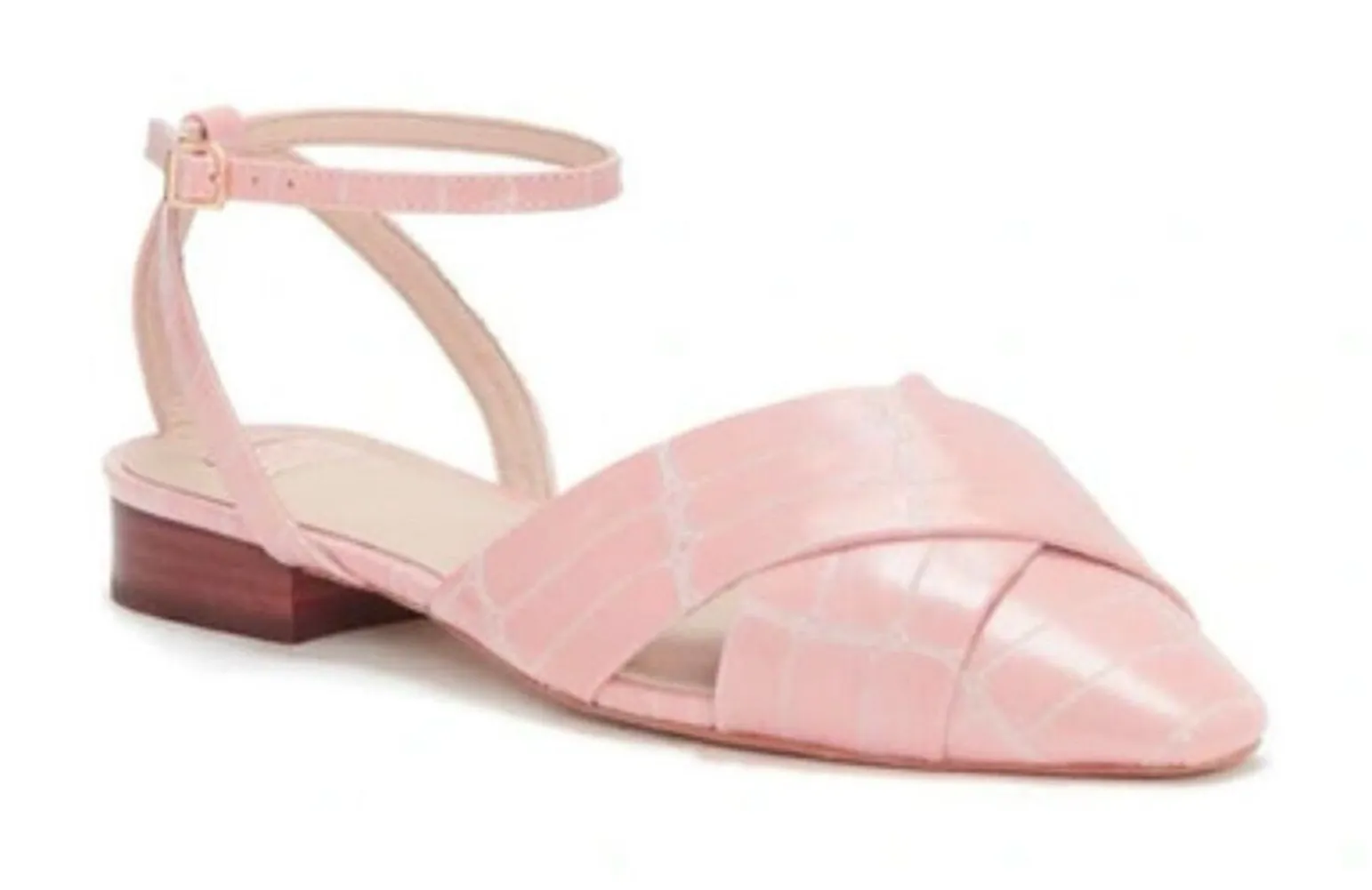 A slender ankle strap secures your foot in a chic pointy-toe flat crafted from smooth leather and finished with a low stacked heel. New without box Adjustable ankle strap with buckle closure Leather upper and lining/synthetic sole