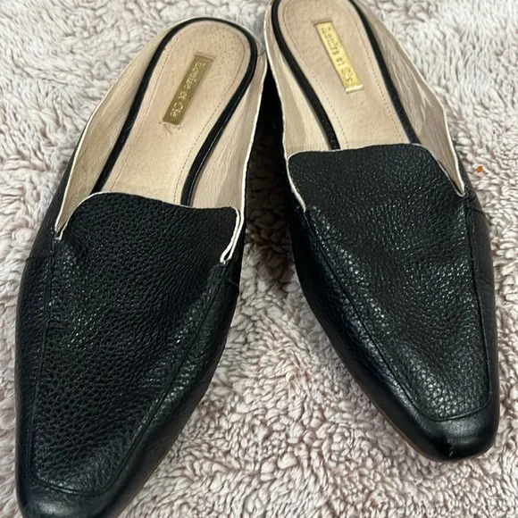Louise et Cie Women's Charriet Leather Slip-On Loafer Mules Black Sz 9 M $159 Perfect for any occasion, these shoes offer both comfort and sophistication. Pre loved condition. ***PLEASE VIEW ALL PHOTOS AS BUYER’S PURCHASE ACKNOWLEDGEMENT OF ITEMS CONDITION AT TIME OF SALE*** additionally, I do my best to assure condition of merchandise at the time of listing….. NO RETURNS, ALL SALES FINAL THANK YOU ALL FOR VIEWING.