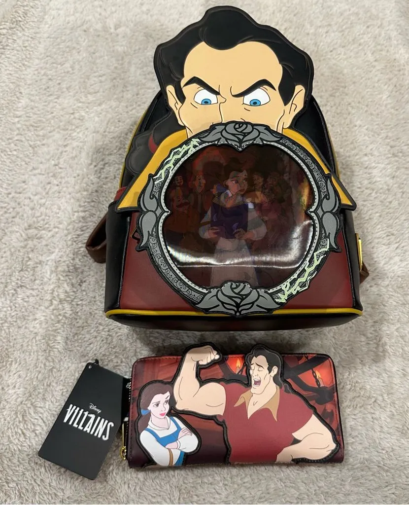 thank you for checking out my closet! accepting all reasonable offers!! if you are interested in multiple items please create a bundle. comment below with any questions! NWT loungefly disney beauty and the beast gaston backpack and wallet