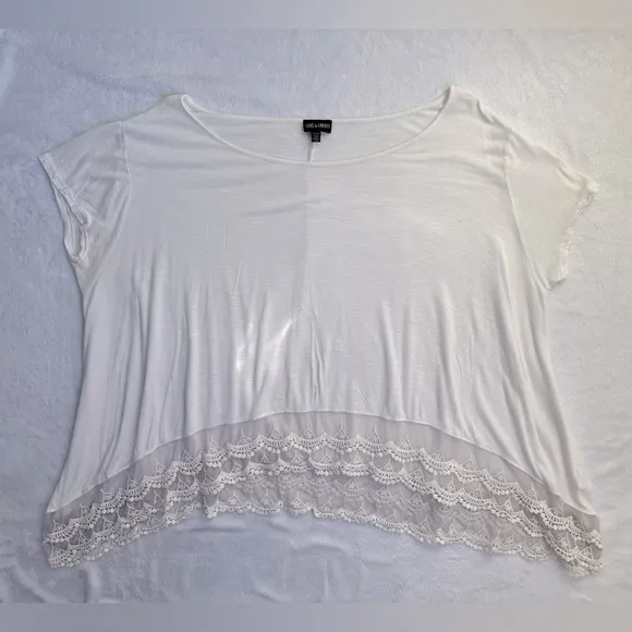 Love & Liberty Lace Crochet Shark Bite Hem Short Sleeve Top in White - Size XL - $19 - From Tara
