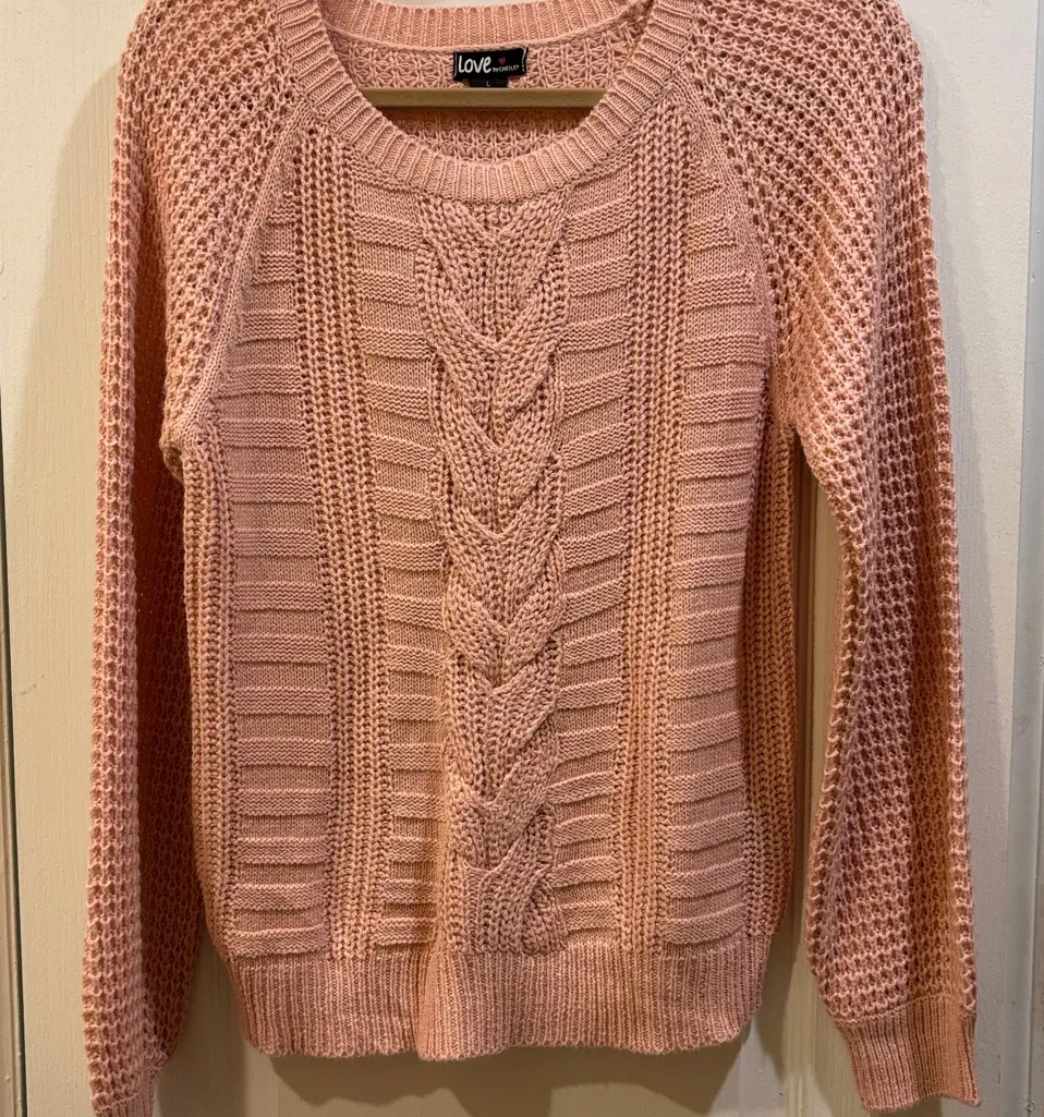 LOVE BY CHELSEY PINK CABLE KNIT SWEATER LIGHT WEIGHT LONG SLEEVE COTTON ACRYLIC Size L - $24 - From Nancy