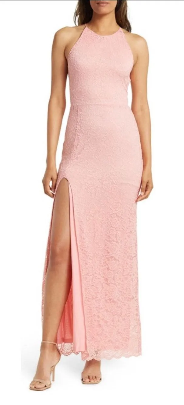 Love by Design Vesta Stretch Lace Maxi Dress in Mary's Rose Size Extra Large (16-18) Excellent Condition. Make an entrance in this event-ready maxi dress that is constructed from delicate lace and features a striking thigh slit. 58" length (size s) Halter neck Spaghetti straps Lace construction Lined Maxi length Thigh slit 85% polyester, 15% spandex Machine wash cold, lay flat to dry Imported Model stats: 5'10", 32" bust, 25" waist, 36" hip. Model is wearing size S. Item #7091748