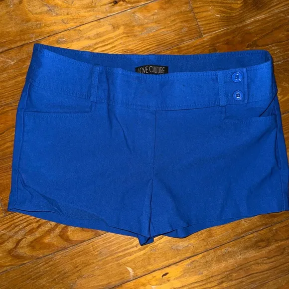 Royal blue Love Culture Shorts Slight stretch Tag states Large however I think these fit more S/M