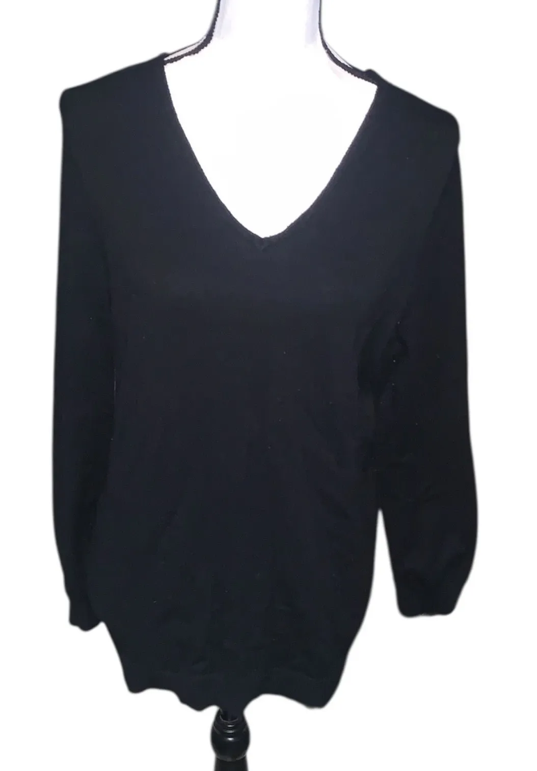 Love Ellie Mia Black V- Neck Back Cutout Detail XL Size XL Rayon polyester nylon Some piling Criss cross back Armpit to armpit measures 20.5 inches Shoulder to hem measures 27 inches