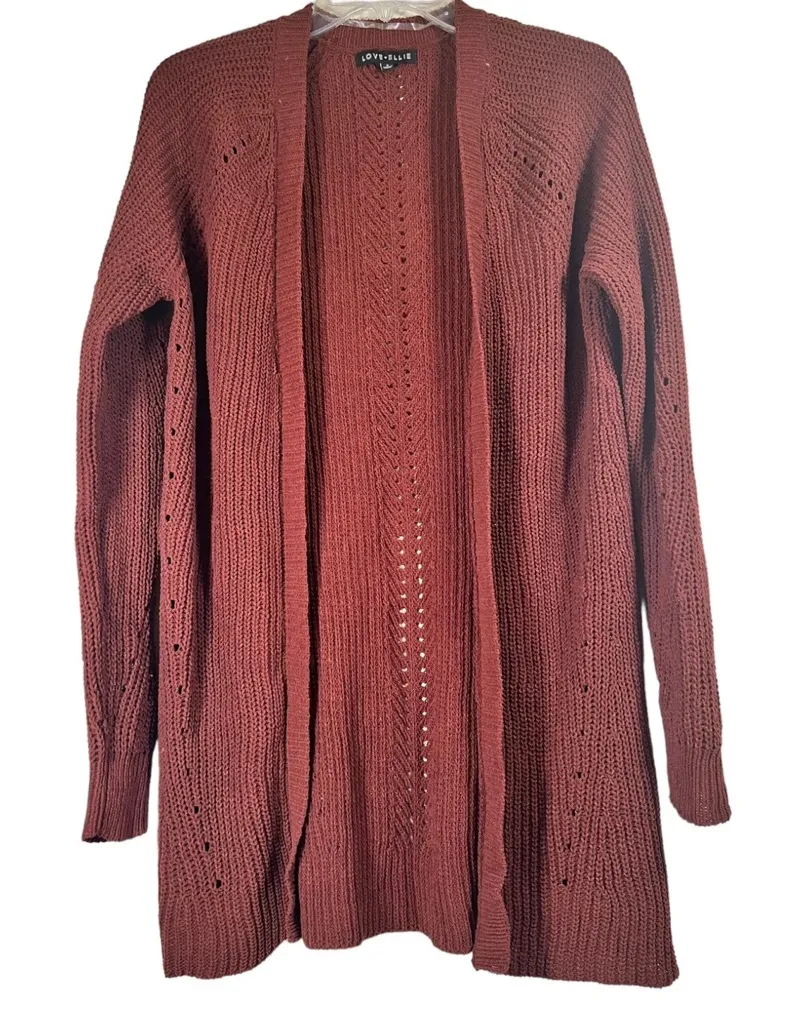 Love Ellie x Stitch Fix Anna Pointelle Detail rust open cardigan with pockets. NWOT. Perfect for layering. Adds warmth and style. Polyester. Front pockets. Like new! PFSF home. All sales photographed. Rack or Sweaters
