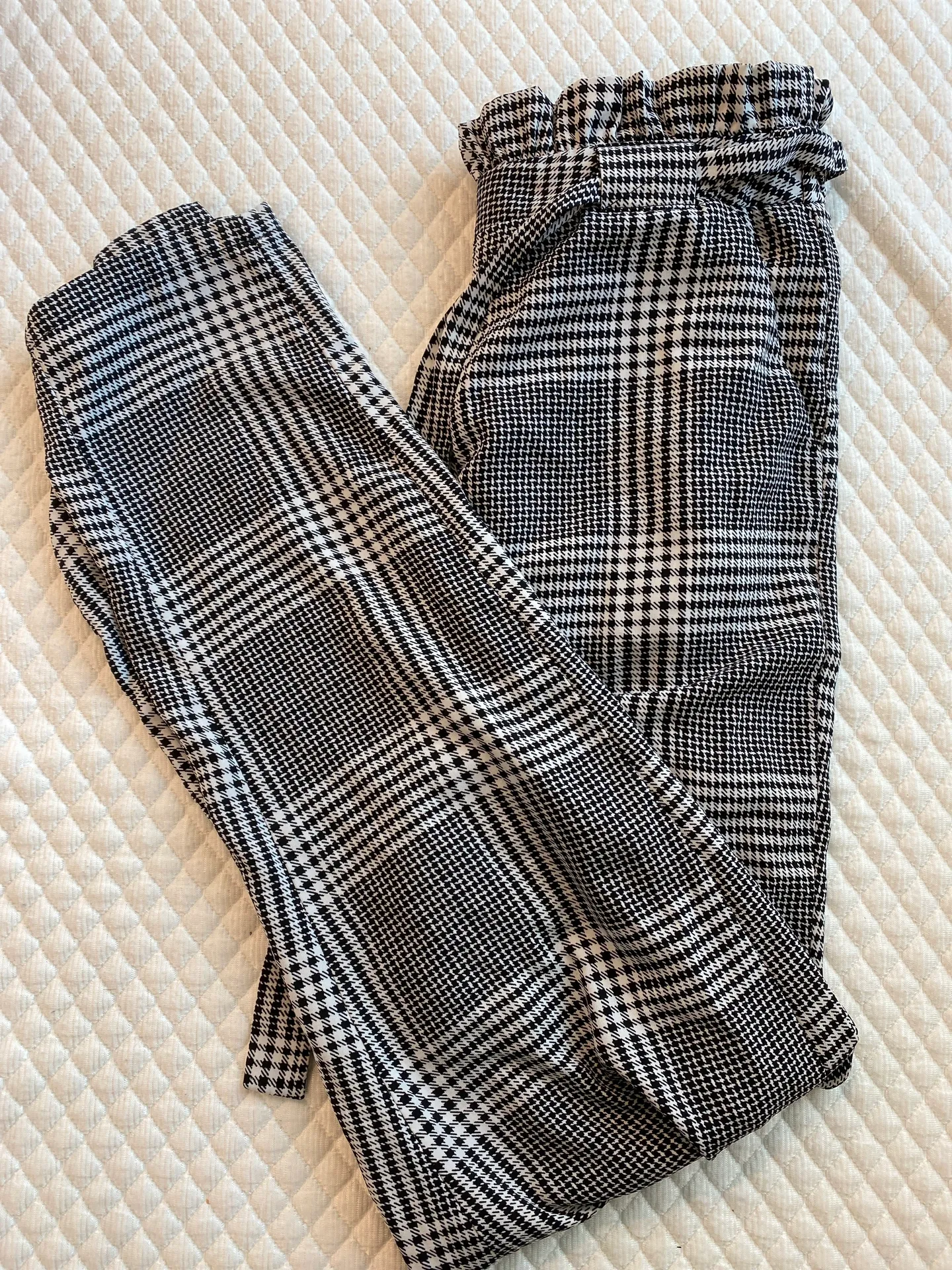 Gently used, Cinched waist, High waisted, Ties at waist, Flowy, Light weight, Ankle length