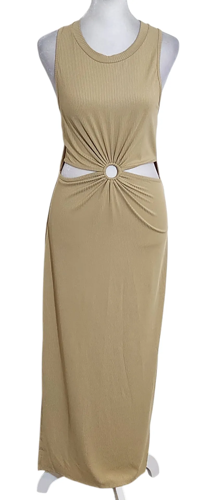 Love J tan sleeveless dress features a stylish cut-out design and side slits. Same-day shipping for orders received on weekdays by noon CST. Make me an offer! Measurements are taken while laying flat and shown in images. Condition: new without tags, still has store tag attached SKU0825-56