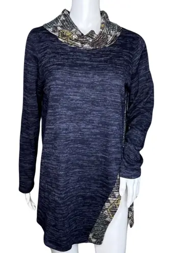 Love Kuza Sweater Womens Medium Blue Marled Cowl Neck Side Slit Office Casual Women's Size Medium... Show more