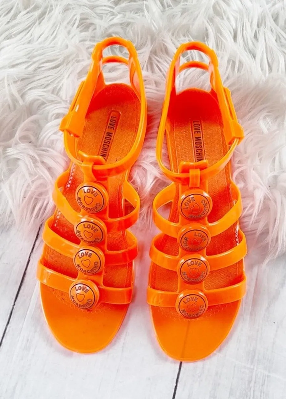 Love Moschino Women's‎ Heart Neon Orange Jelly Strap Sandals Size 38 - $86 - From Tomi