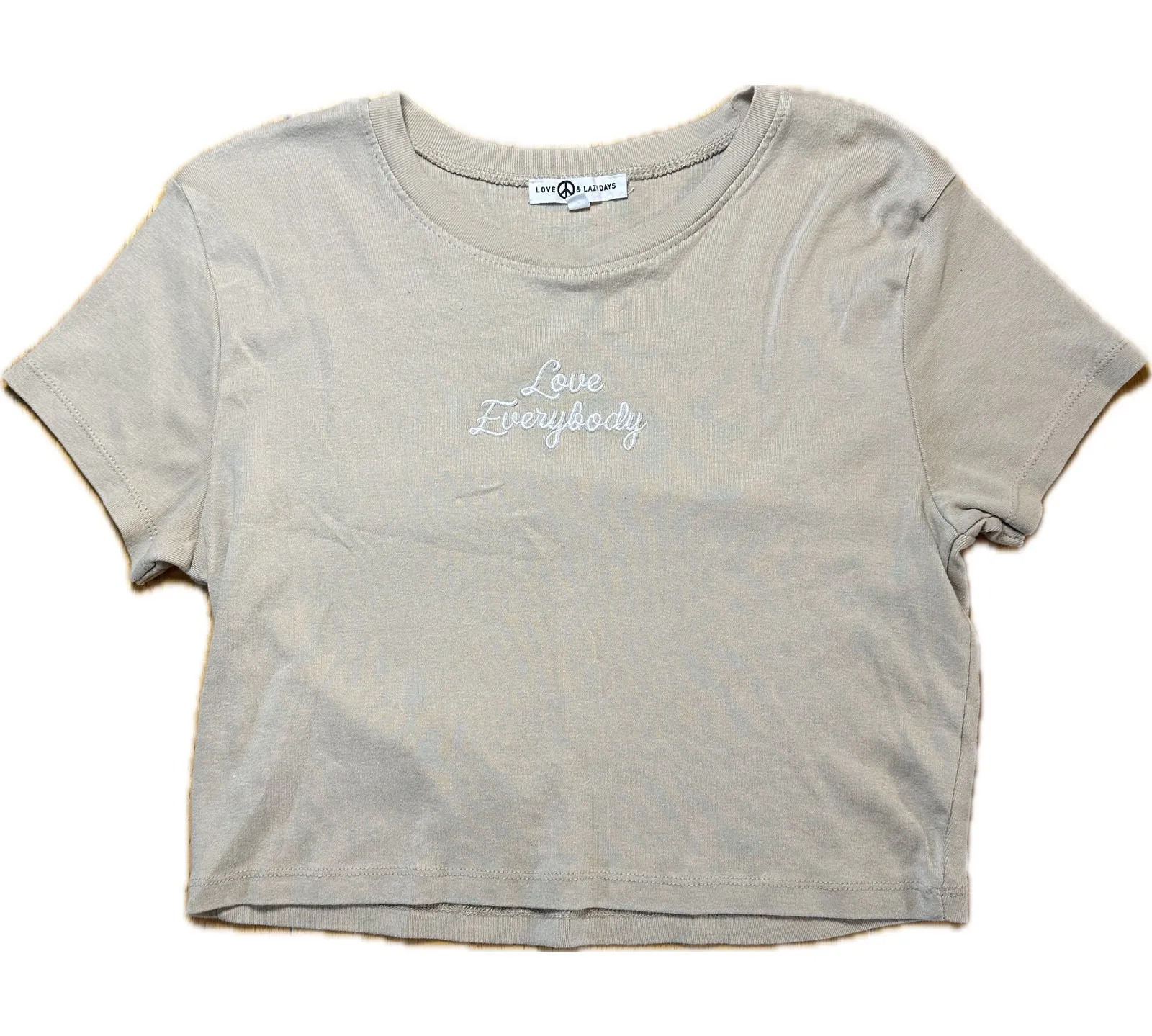 Love & Lazy Days Women's Cropped T-Shirt - XL, Regular Beige Discover the casual elegance of Love & Lazy Days with this women's cropped t-shirt in size XL. Designed for a regular fit, this beige top features short sleeves and a solid pattern, complemented by charming embroidered accents. Crafted from cotton and manufactured in India, this t-shirt combines comfort with a touch of style. Pre-owned. Keywords: Love & Lazy Days, Women's T-Shirt, Cropped Top, XL, Regular Size, Beige, Cotton, Short Sleeve, Solid Color, Embroidered, Casual Wear, India, Fashion, Pre-owned, Comfortable.