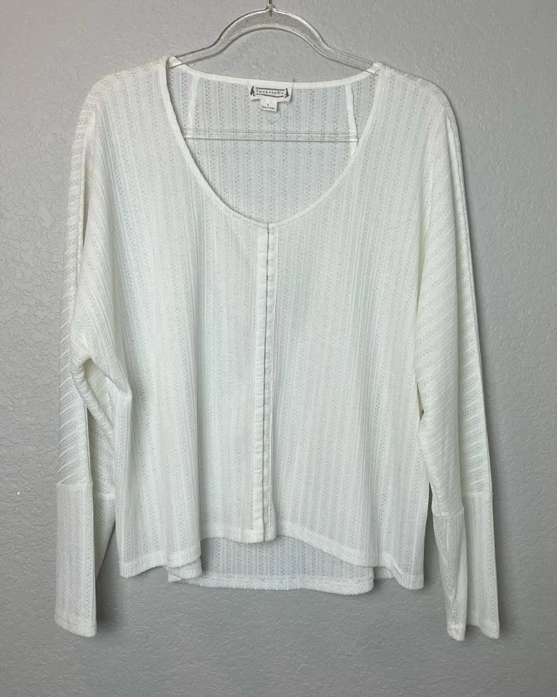 Love Riche White Semi Sheer Knit Clasp Front Blouse Size L Size L - $20 - From Nicole