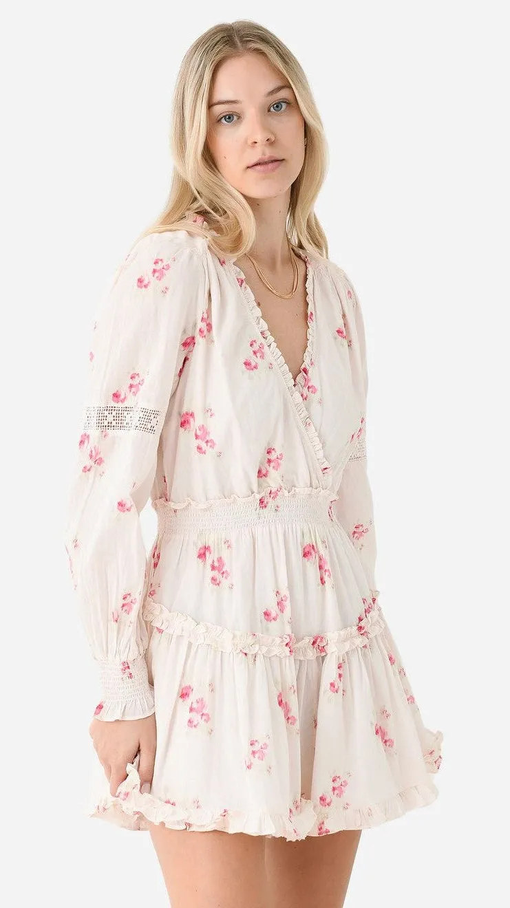LoveShackFancy 100% Cotton White Pink Floral Ruffle Mini Dress Size Small Condition: Pre-owned, exc... Show more