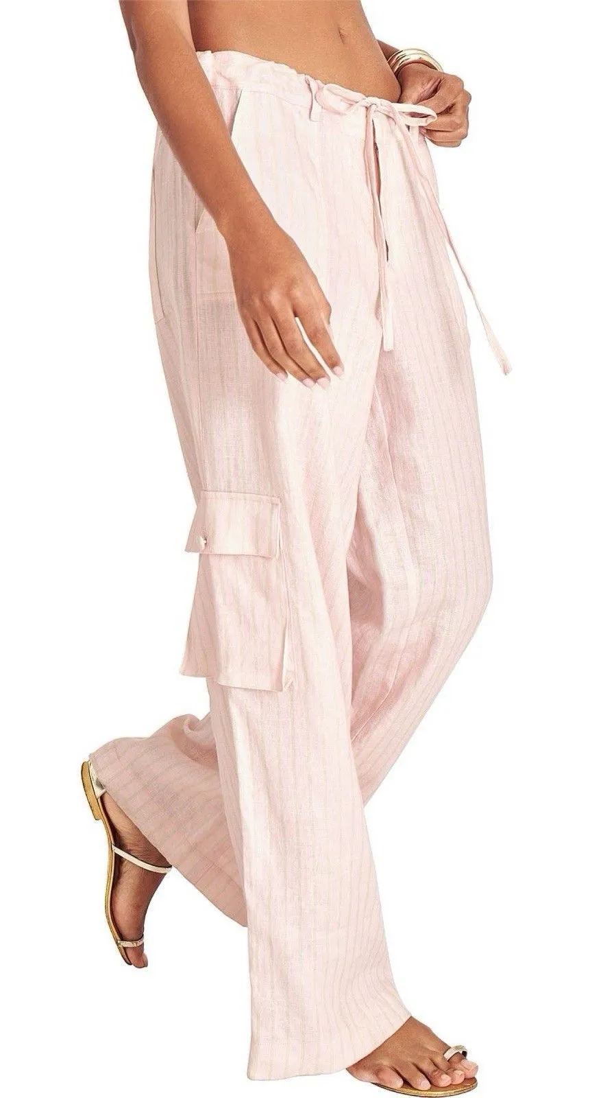 Love Shack Fancy Cedric Cargo Pants in Berries and cream Pink Wide Leg 100% Linen Women's Size 10 Co... Show more