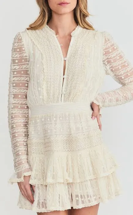Beautiful fairycore bridal loveshackfancy cream tulle organza lace Swiss dot dress Fully lined Long... Show more
