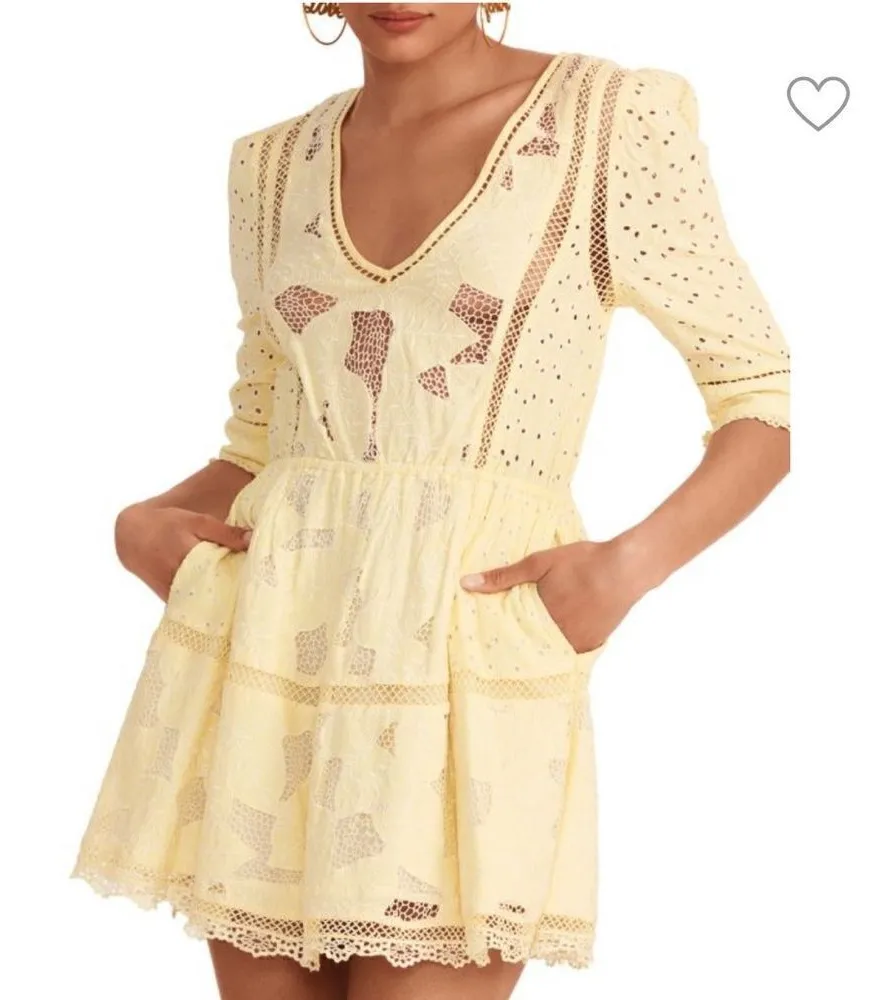 Jobelle Crochet-Trimmed Broderie Anglaise Mini Dress in Lemon Sun Yellow- LoveShackFancy
