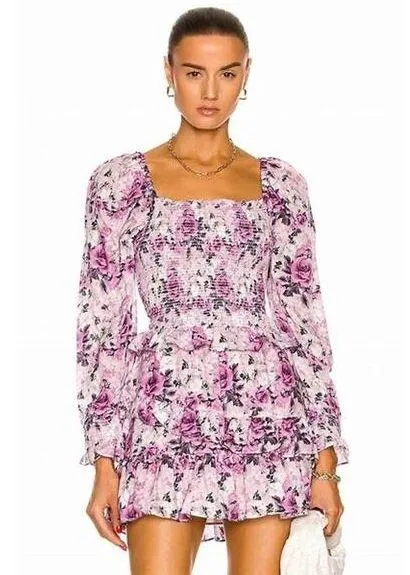 LoveShackFancy Russell Smocked Pink Floral Print Long Sleeve Square Neck Top Good preowned conditi... Show more