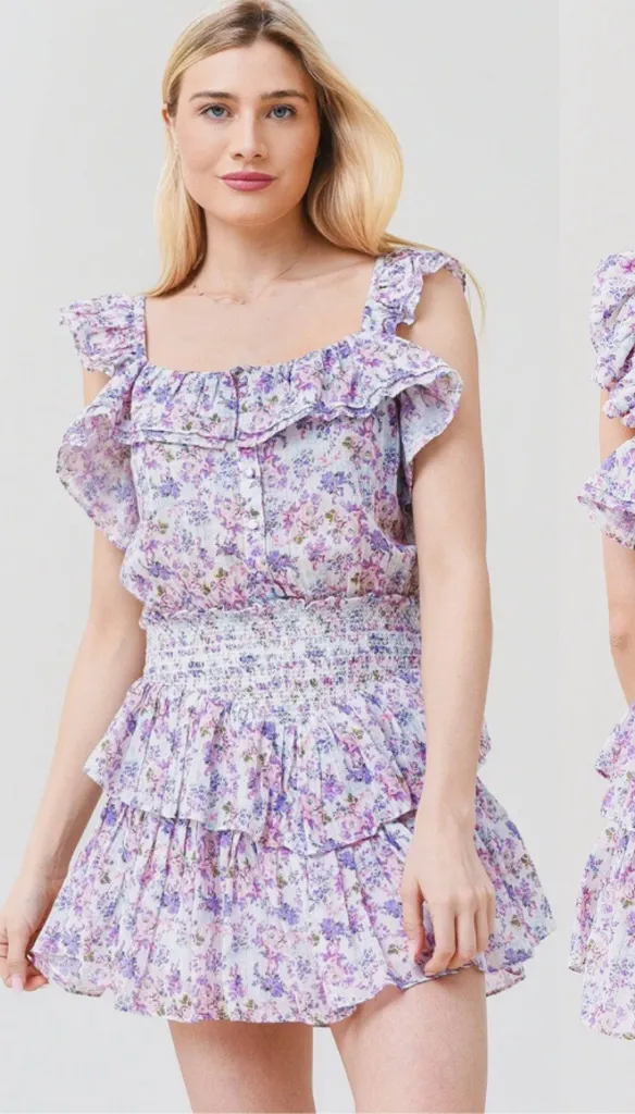 *GREAT CONDITION!!* Loveshackfancy Shanely Printed Floral Mini Ruffle Dress size Medium Super cu... Show more