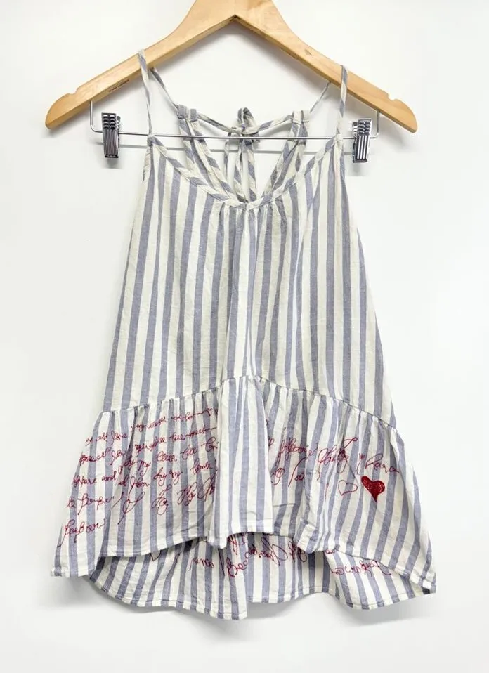 Love Stitch Tank Top Francois Embroidered Size Large Striped 100% Cotton Gray - $28 - From Brenda