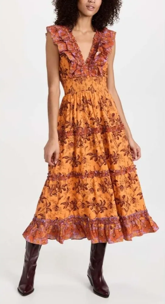 Love the Label Azalea Ruffled Midi Dress Sz. XS 🏷️ Retail: $325 💎 Condition: Excellent! 📏 Measurements (flat lay): 51"L,15" armpit x armpit,10.5" waist (flat)--has elastic (Compare to your favorite piece for best fit.) 🧵 Material: 100% Cotton 🧺 Care: Dry clean ✨ Description: - - Pull On closure - V neckline and smocked elastic bodice - Fabric: Mid-weight non-stretch weave - Tie closure at back - On-seam hip pockets 🛍️ Bundle 2+ items to save — discount auto-applied! ✨ Follow my closet for daily new listings and markdowns! 🚚 Fast Shipping