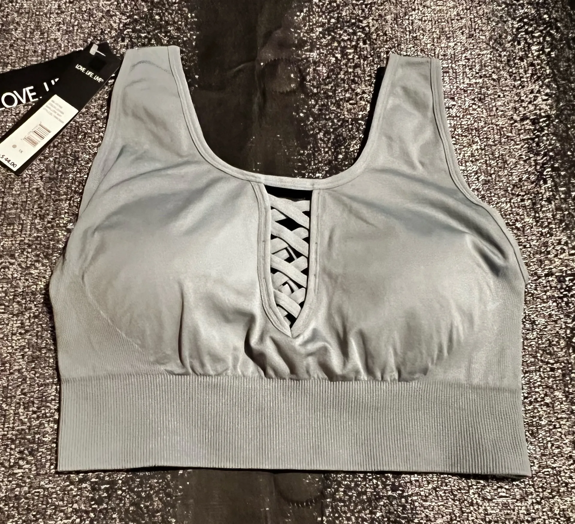Womens 1X NWT Love Live Life Sports Bra with padding. Activewear with the latest technology for your best performance. Moisture Wicking-Stay dry during every sweaty activity. Breathable-Advanced evaporation for comfort. 4 Way Stretch-Stretch from all directions for styles that move with you Great condition. No holes tears or stains. Smoke free pet free home.
