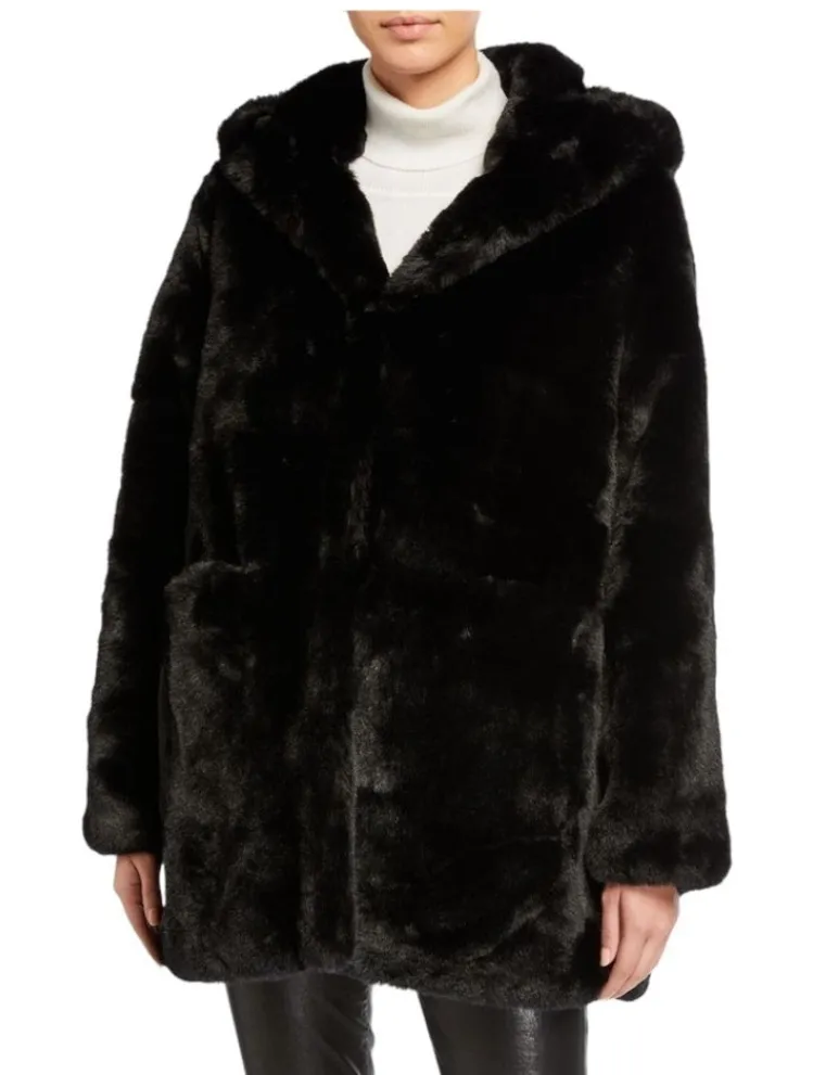 Like new Love Token Faux Fur Hooded Coat Size XS. Black luxurious faux fur fabric outer. Oversized f... Show more
