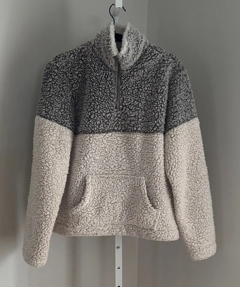 Stay warm and stylish with this cozy Gray and Cream faux sherpa jacket sweatshirt. It is a closet st... Show more