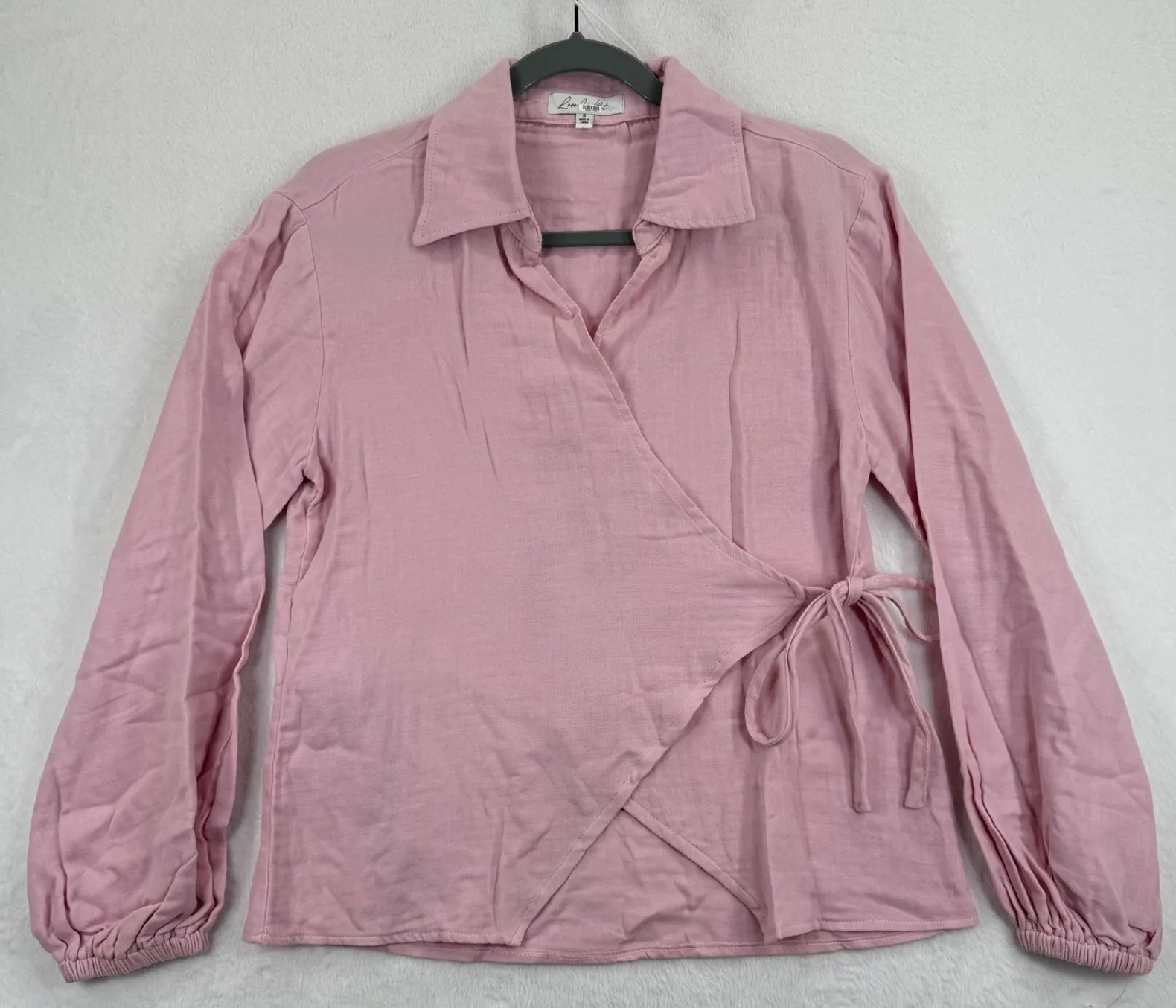 Color: Pink Type: Blouse Department: Women Material: Cotton Neckline: Collared Sleeve Length: Long Sleeve Sleeve Type: Balloon Sleeve Accents: Bow Pattern: Solid Features: Tie Waist, Collared, Wrap Front, Lightweight, Casual Fit: Regular Keywords: Love Adikt, Wrap Blouse, Pink Top, Long Sleeve Shirt, Womens Blouse, Small Size, Cotton Top, Casual Blouse, Tie Waist, Collared Shirt, Everyday Wear, Stylish Top, Spring Top, Summer Top Thank you for viewing my listing! Please see the photos for a detailed look at its CONDITION and MEASUREMENTS. All preowned items have been steam cleaned and/or washed. Feel free to reach out with any questions.