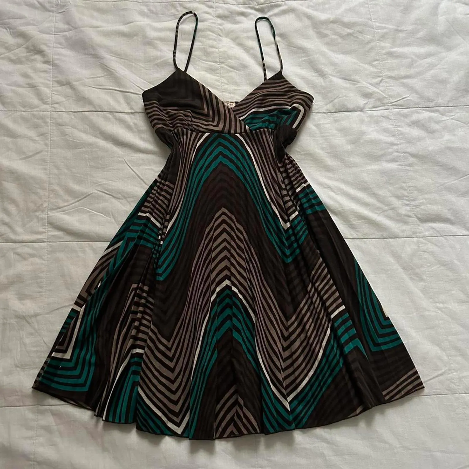 Lovely Day Y2K paper tag vintage Brown blue chevron pattern babydoll dress - $35 - From Killah