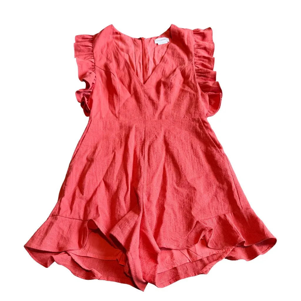 Lovers + Friends Size XS Women's US Short sleeve romper in gorgeous coral linen fabric Defined... Show more