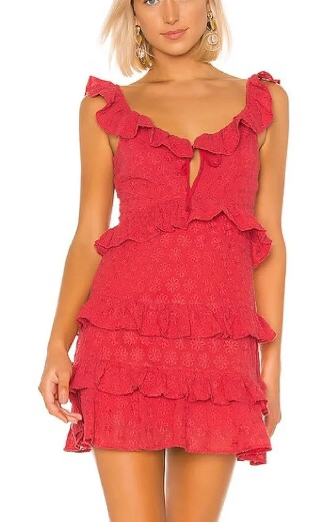 Keywords: Lovers + Friends, Revolve, Eyelet Dress, Ruffle Dress, Tiered Mini, Red Mini Dress, Summer Fashion, Romantic Aesthetic, Coquette, Floral Embroidery, Vacation Outfit, Resortwear, Party Dress, Brunch Outfit, Bright Red, Cottagecore, Boho Chic, Cocktail Dress, Revolve Clothing, Date Night, Sundress, Eyelet Lace, Tiered Ruffles, Red Hot, Small, Boho, Bohemian, Feminine, Flirty, Romantic, Girly, Whimsical, Cottagecore, Prairie, Coquette, Tomato Girl Summer, Vintage Inspired, Shabby Chic, Retro, Sophisticated, Chic, Bold, Vibrant, Statement Piece, Textured, Embroidered, Lace-like, Detailed Style No. LOVF-WD2054, Manufacturer Style No. LFD1080 U19