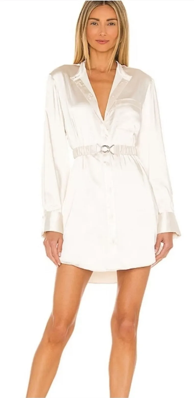 100% poly. Made in China. Hand wash. Unlined dress. Front button closure with breast slip pocket. Sa... Show more