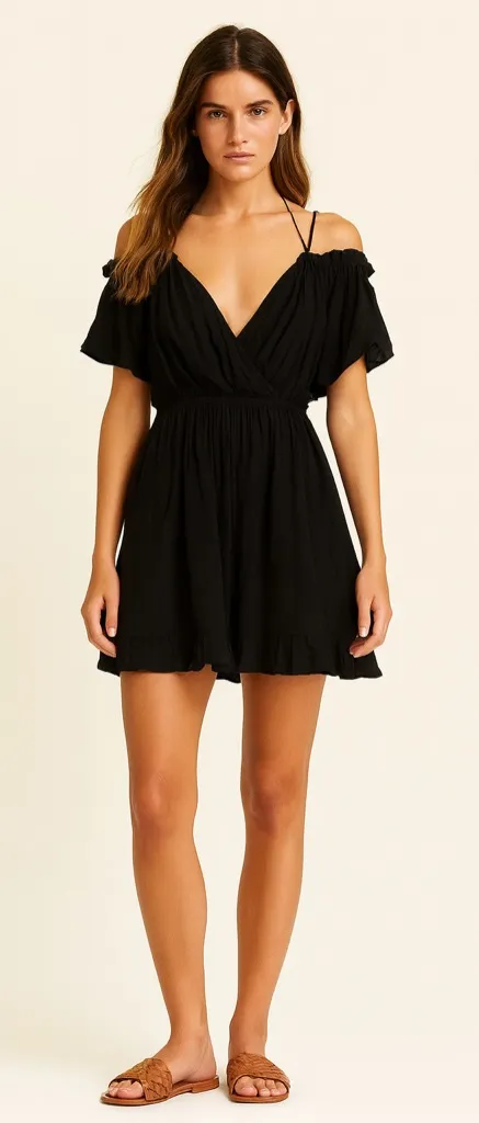Short sleeve, off the shoulder Lovers and Friends tie back mini dress with ruffle hem