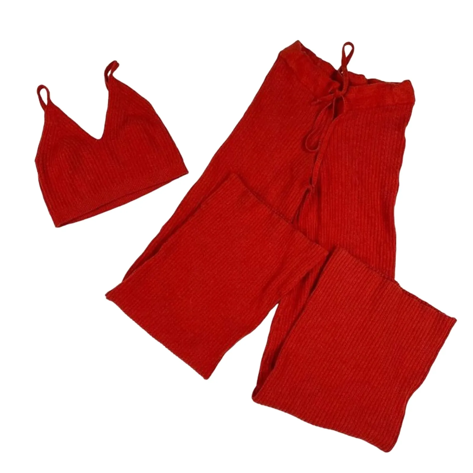 PS1123-F7 Size : M Color : Orange Red Condition : Good Matching two piece set Knitwear fabric St... Show more