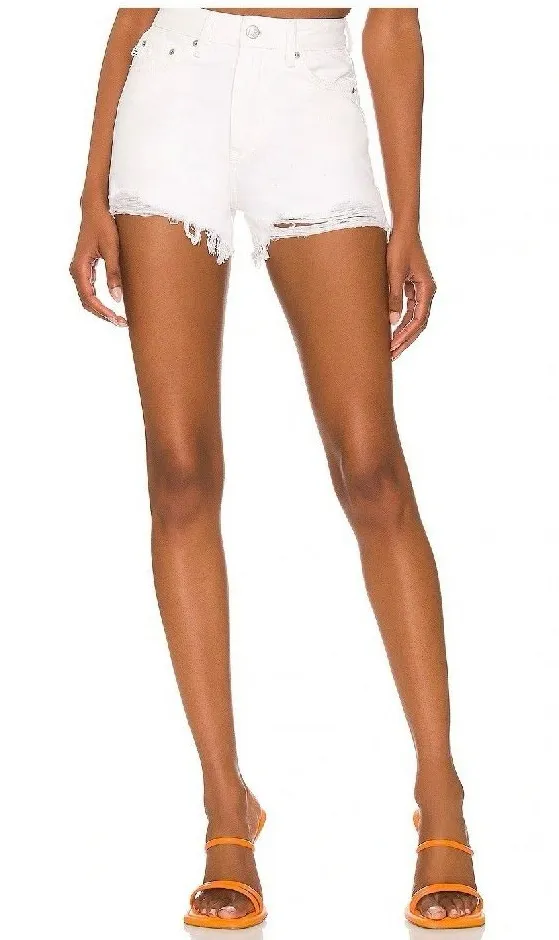 The product is a pair of Lovers and Friends high rise cut-off shorts in the color white, size 23. Ma... Show more