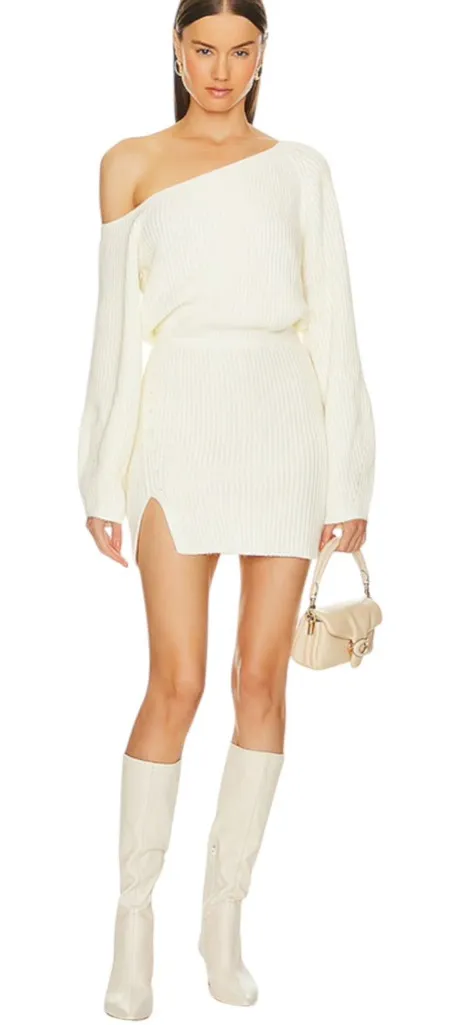Lovers and Friends Makya Off Shoulder Sweater Mini Dress in Cream Size S Excellent pre owned con... Show more