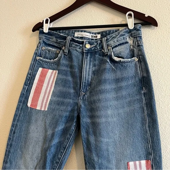 Denim Patchwork 5-Pockets Straight Leg Comfortable Breathable 100% Cotton Size based on measurement... Show more